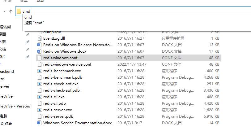 进入解压后的文件夹,输入命令 redis-server redis.windows.conf 后回车,如下即表示启动成