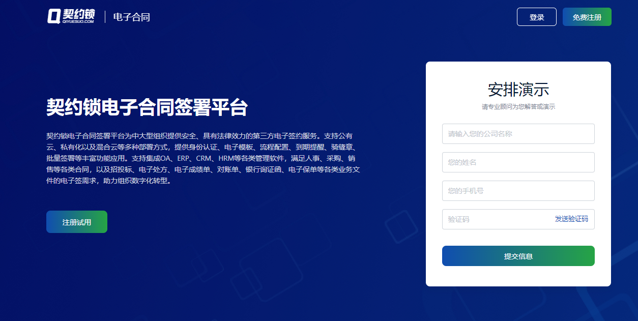优缺点:契约锁的主要优势在于其针对中大型组织的全面电子签名解决方案,以及与业务系统的高度集成能力。其专业性和多行业适应性使其成为电子签名市场的佼佼者。同时,契约锁提供免费试用和体验Demo,方便潜在客户评估其服务 (https://www.qiyuesuo.com/contract)