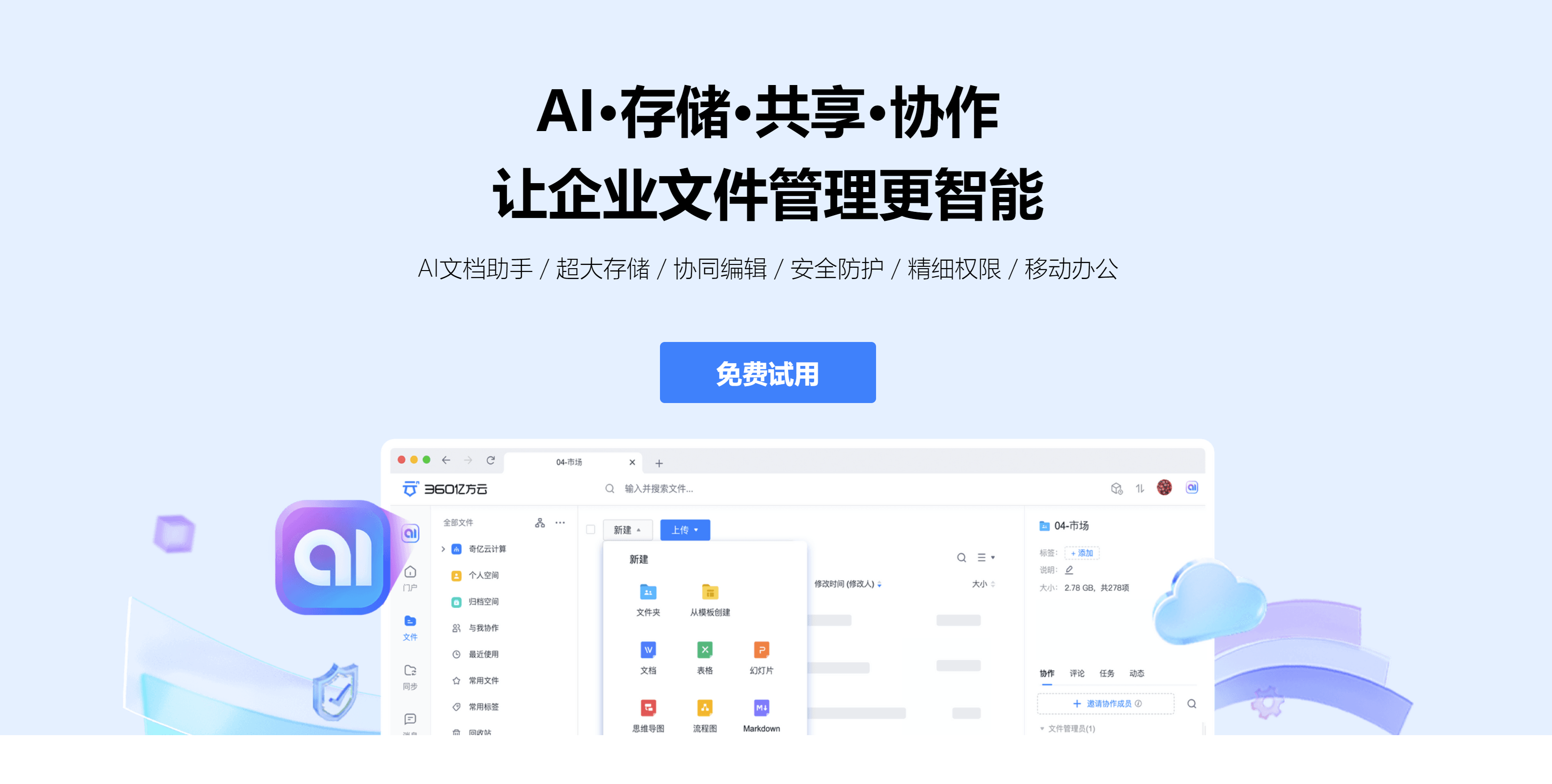 推荐理由:360亿方云提供了全面的企业网盘解决方案,支持实时文件同步和多人在线编辑,非常适合需要高效团队协作和文件共享的企业。