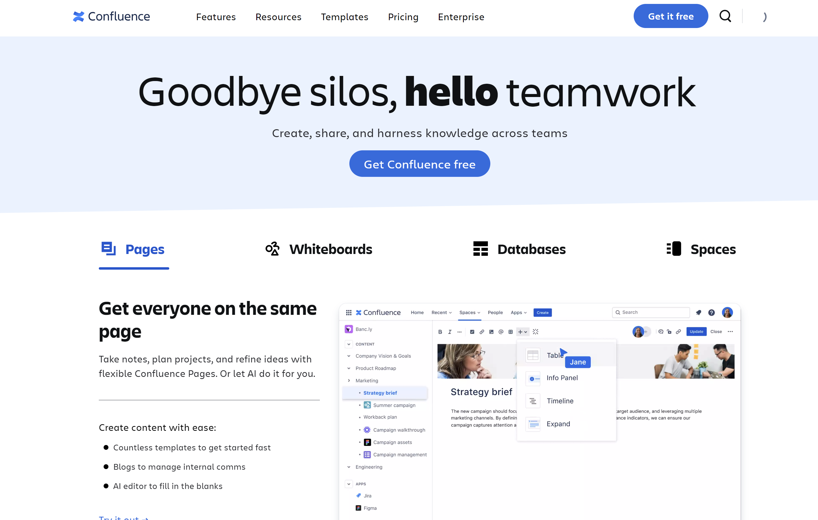 推荐理由:Confluence 是一款非常适合团队协作的企业级工具,支持文档、项目协作与知识管理。它提供的动态页面功能能够帮助团队创建、分享和整理知识,从而提高团队的透明度和效率。