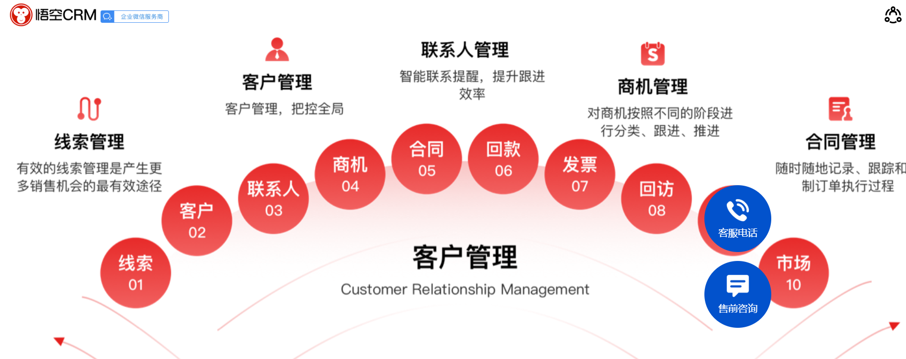 主要功能:悟空CRM提供了多种功能,包括客户管理、销售管理、市场营销自动化、工作流管理以及报表和分析功能。用户可以轻松捕捉和管理潜在客户,跟踪销售进度,并通过自动化工作流来提高团队的工作效率。