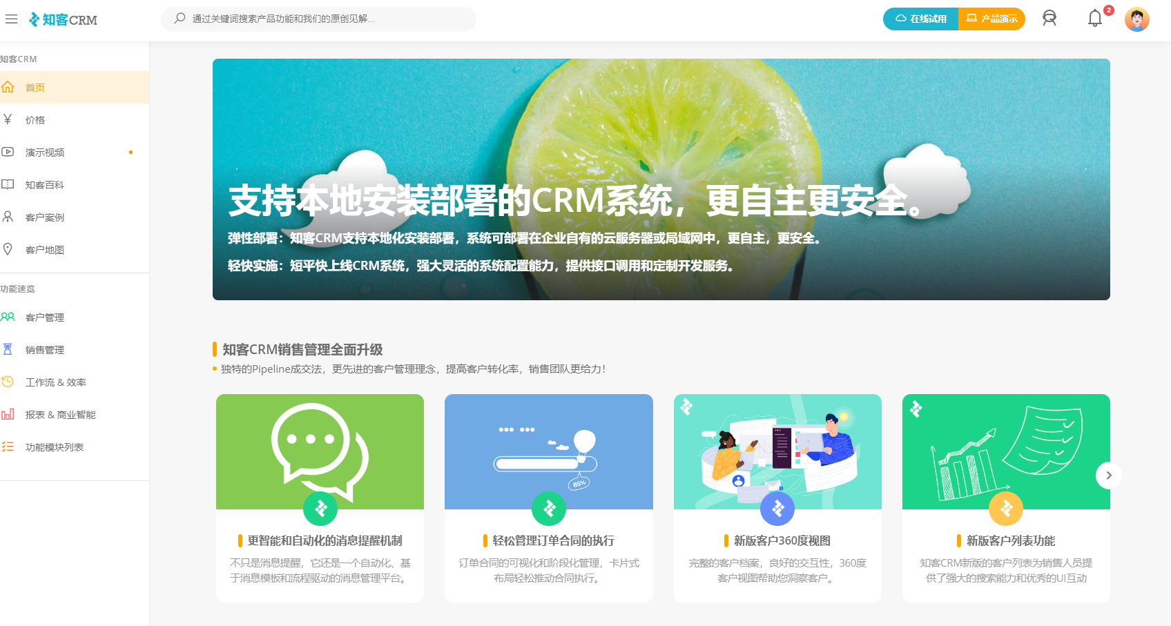 知客CRM是一款只做私有化部署的CRM系统,由知客科技开发,已经有16年的历史。