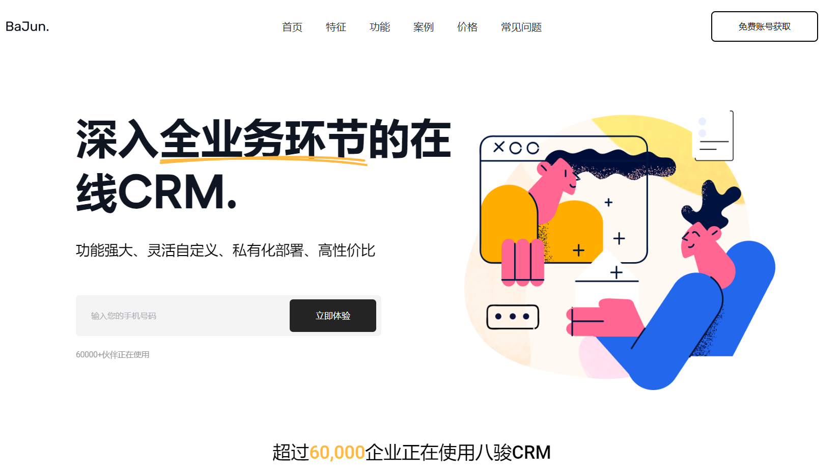 八骏CRM创立于2013年,是国内领先的可定制化CRM软件提供商。适用于中大型企业,特别是那些对数据安全和系统可定制性有较高需求的公司。