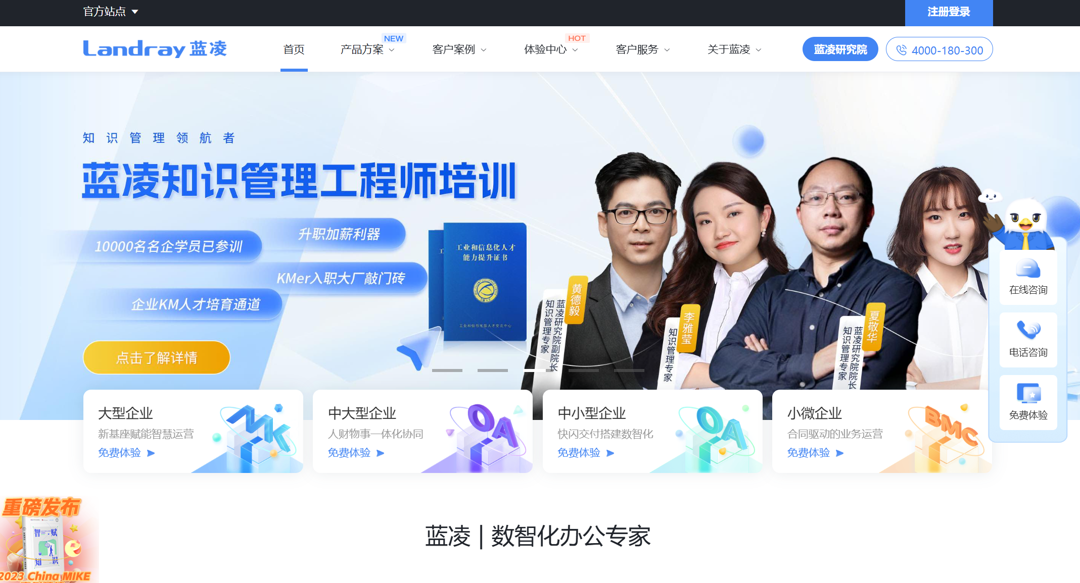 蓝凌KMS适用于大型企业和行业标杆,特别是那些需要高效管理和应用企业知识资产的组织。
