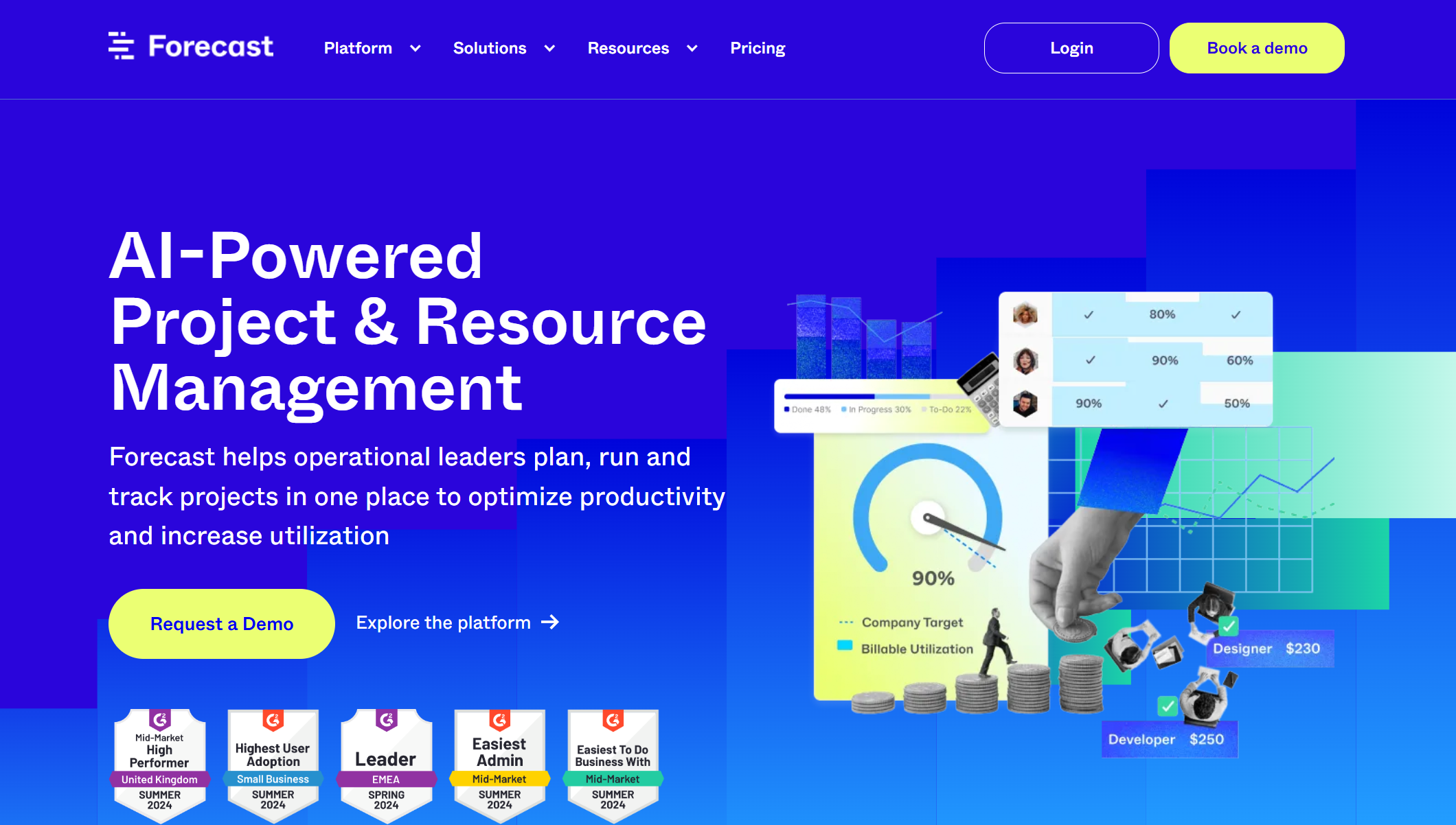 Forecast的优势在于其强大的人工智能驱动的自动化功能,这使得团队在管理复杂项目时能够更加轻松。此外,Forecast还提供了与其他工具的无缝集成,如Jira和Harvest,使得信息流转更加顺畅,项目管理更加高效。
