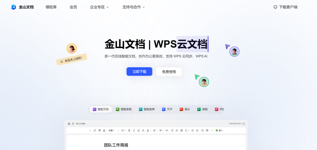 金山文档由金山软件开发,是国内广受欢迎的在线文档管理工具,以其高性价比和易用性著称。系统支持在线编辑、文档共享和权限设置,适合中小企业和个人用户使用。主要功能包括实时协作、云端存储、版本恢复和模板库,帮助用户高效完成文档处理。金山文档的优势在于其简洁友好的用户界面和丰富的功能模块,且价格实惠,适合预算有限的企业。适用用户场景包括团队协作、远程办公和日常文档管理等。
