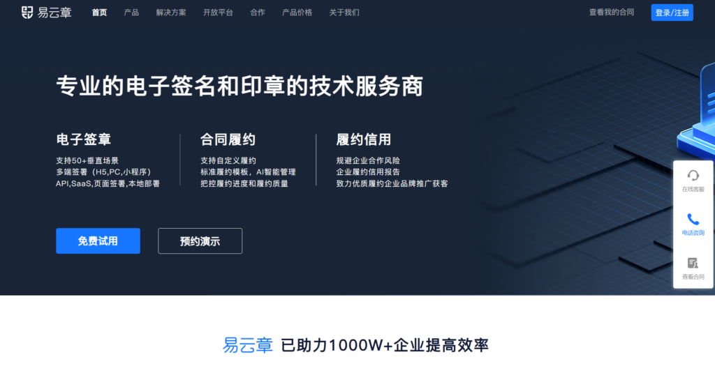 易云章的优势在于其高度的安全性和极佳的用户体验。平台采用分布式密钥管理和先进的加密技术,保证合同数据的安全和隐私。同时,易云章还提供灵活的接入方式,包括API接口和页面嵌入,满足不同企业的业务需求,大大简化了合同签署和管理过程。