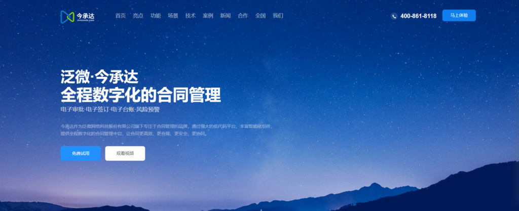 今承达是一款全面的电子合同管理系统,专注于为企业提供数字化的合同生命周期管理。该系统通过集成智能合规审核和全程风控预警功能,支持企业合同的电子签订、电子台账管理,并实现合同数据的全面数字化存档。