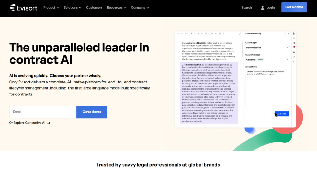 Evisort 特别适合大型企业和跨国公司,因其具备处理不同类型合同和支持多区域管理的能力。无论是法律团队、采购团队还是销售团队,Evisort 都能为其提供高效的合同管理解决方案。