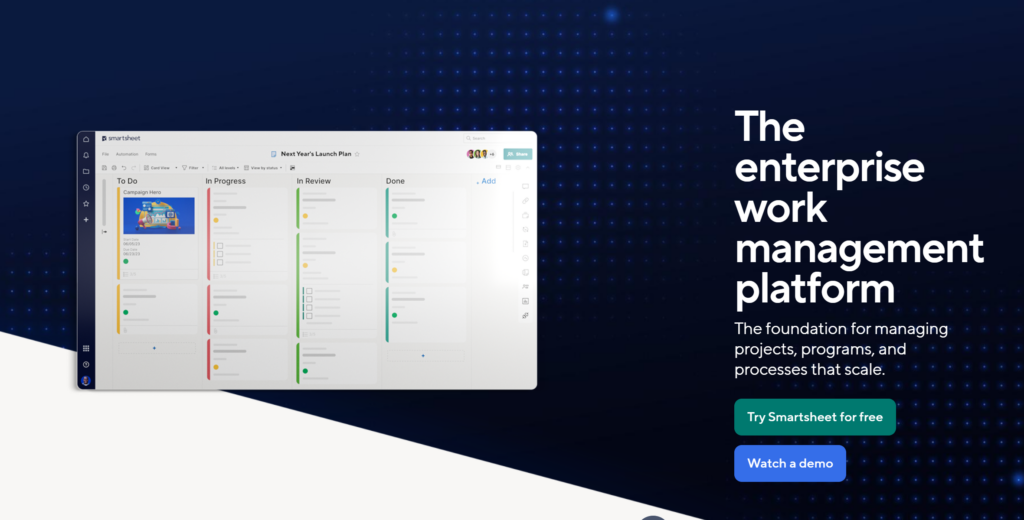 Smartsheet 是一款国外的表格式项目管理软件,尤其适合复杂项目的管理。它提供灵活的任务管理、时间表和进度跟踪功能,能帮助团队更好地协作。Smartsheet 的优势在于其灵活性和与多种工具的无缝集成,适合大型跨部门项目的管理。