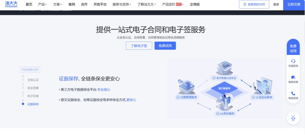双国资背景,区块链直连司法存证,支持私有化部署。