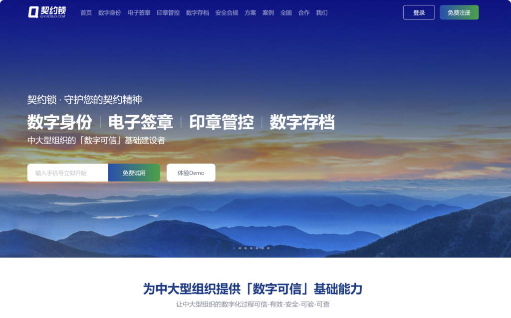 是国内专业级区块链电子合同生态服务商,目前已经广泛应用在电子政务、银行、券商、保险、运营商、零售、人力资源、医疗、教育、制造业企业等200+行业,包括滴滴、中国光大银行、360集团、中原证券、国家电网、中国移动、华为等知名公司,用户规模超过千万级。