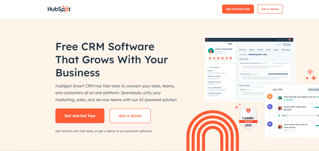 HubSpot CRM 是一款广受欢迎的免费客户关系管理工具,适用于各类规模的企业,尤其是中小型企业。其简洁直观的界面使得用户可以快速上手,不需要太多的培训即可开始使用。HubSpot CRM帮助企业管理联系人、追踪销售机会、记录客户互动,并提供多种自动化功能,提升销售团队的效率。更棒的是,HubSpot CRM的基本版本是免费的,提供了包括邮件追踪、表单管理、任务安排等在内的多种功能,特别适合预算有限的小型企业。