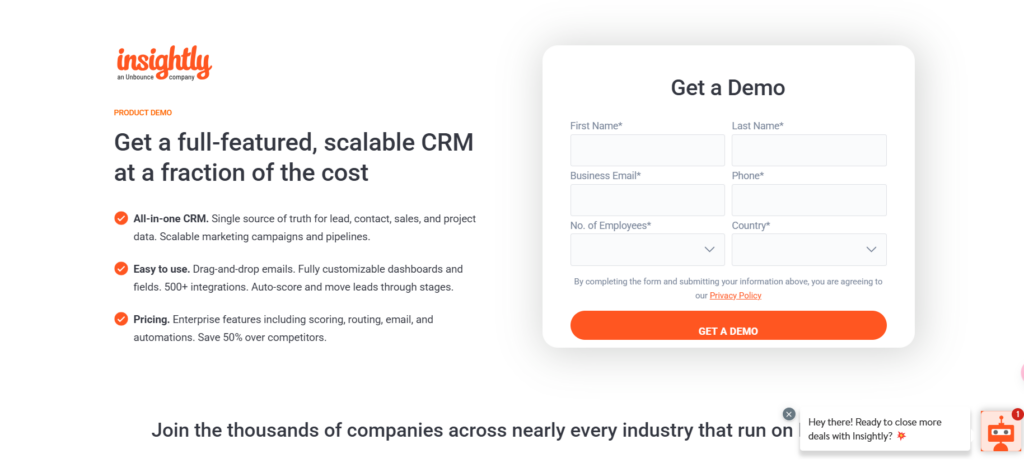 Insightly是一款专为中小型企业设计的CRM系统,提供全面的客户关系管理和项目管理功能。它将CRM与项目管理结合,让团队能够在同一个平台上处理销售、客户支持以及项目进度等任务。Insightly非常适合那些需要一个集成化平台来管理客户数据、销售机会、沟通记录、项目任务的企业。通过直观的界面,用户可以快速了解客户信息,追踪销售进展,并且能够轻松生成定制化的报告。