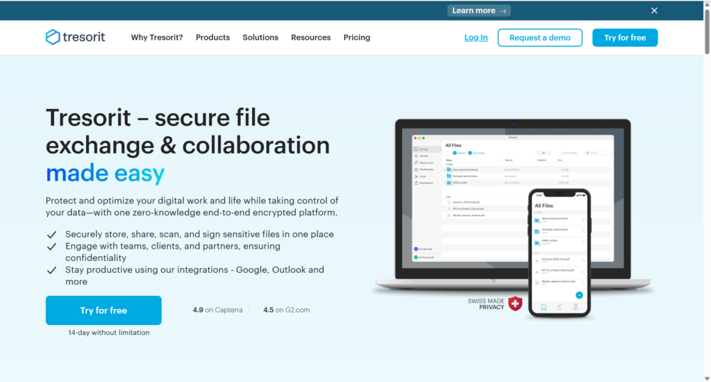 Tresorit以其高度重视隐私保护和安全性而闻名,专为需要极致数据加密和安全传输的企业而设计。产品采用端到端加密技术,确保文件在传输和存储过程中的绝对安全,适合处理敏感信息的行业使用。