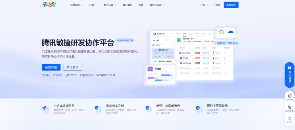 TAPD主要功能包括需求管理、任务分配、缺陷管理、迭代规划和实时数据报表等,通过直观的看板和甘特图展示项目进展情况,用户可以方便地进行任务调度和团队协作。同时,平台还支持自定义工作流程和集成第三方工具,实现与代码托管、持续集成等环节的无缝对接,为开发、测试及运维提供全面的管理支持。