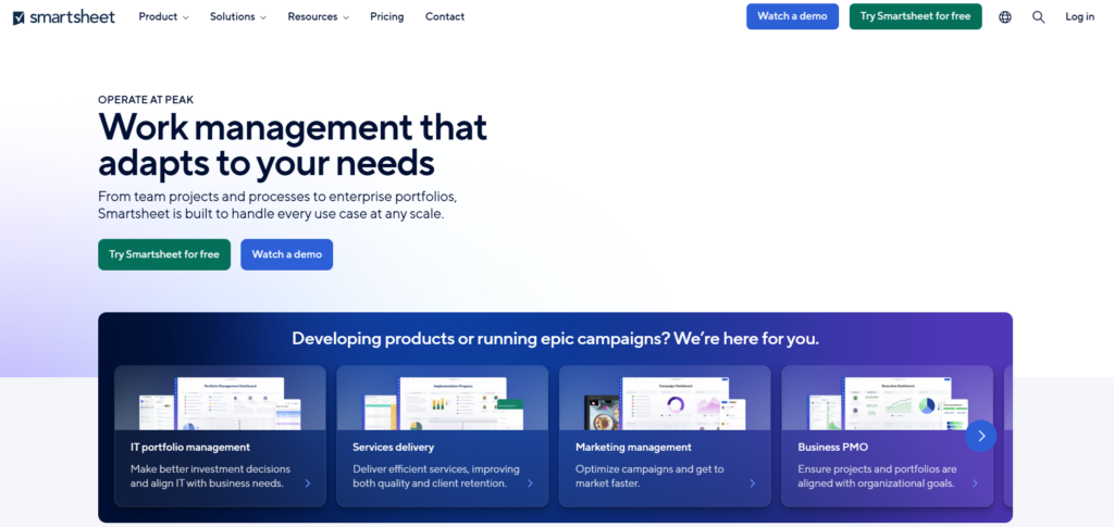 Smartsheet是一款基于云的工作管理与协同平台,旨在为用户提供灵活、直观的项目规划、任务分配和资源管理解决方案。该软件利用类似电子表格的界面和强大的自动化功能,帮助企业在日常运营中实现数据驱动的决策和高效协作,从而大幅提升项目执行效率和团队协同能力。