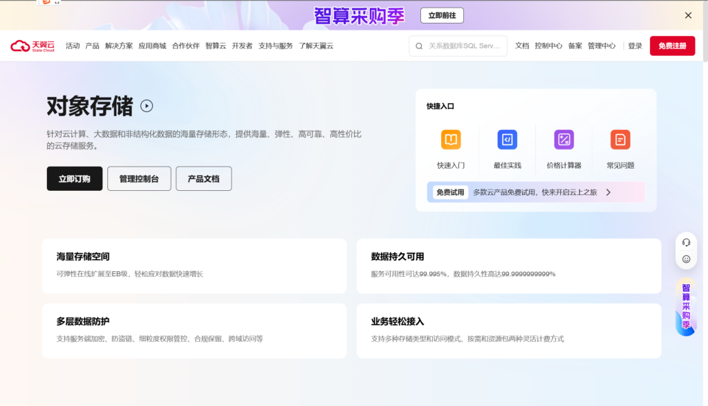 总体来看,天翼云对象存储凭借其出色的网络资源和高安全标准,成为众多企业青睐的云存储解决方案。对于希望借助电信级技术保障数据安全和传输效率的企业来说,这款产品无疑是一个理想的选择。