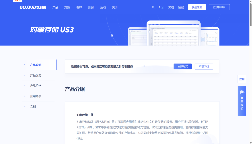 UCloud对象存储专为企业级用户设计,凭借高性能和稳定性在国内市场中占据了一席之地。该产品提供全方位的数据保护机制,包括多副本存储和自动容灾能力,确保企业数据在各种场景下都能得到妥善管理。作为测评博主,我认为UCloud对象存储在安全性和响应速度上表现优异,特别适合对数据安全有严格要求的企业。