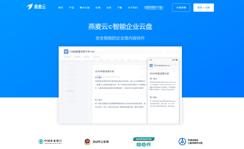 燕麦云主要功能涵盖文件的在线存储、自动备份、版本控制以及跨平台文件同步,支持多终端无缝对接,实现文件共享与协同编辑,同时提供精准的权限管理、日志追踪和数据恢复功能,以满足企业在数据管理、文件协作和信息安全等多方面的需求。
