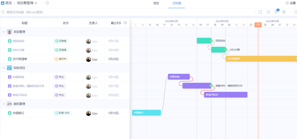 在复杂的项目管理中,手动绘制甘特图变得非常繁琐且容易出错。项目甘特图绘制软件的出现,不仅提高了绘制甘特图的效率,还提供了更多自动化功能,如任务提醒、进度自动更新、多人协作、资源管理等。通过这些功能,项目团队能够实时跟踪任务进展,确保每个阶段都在预定的时间框架内完成,从而减少延误和冲突,提高项目管理的精确性和可控性。