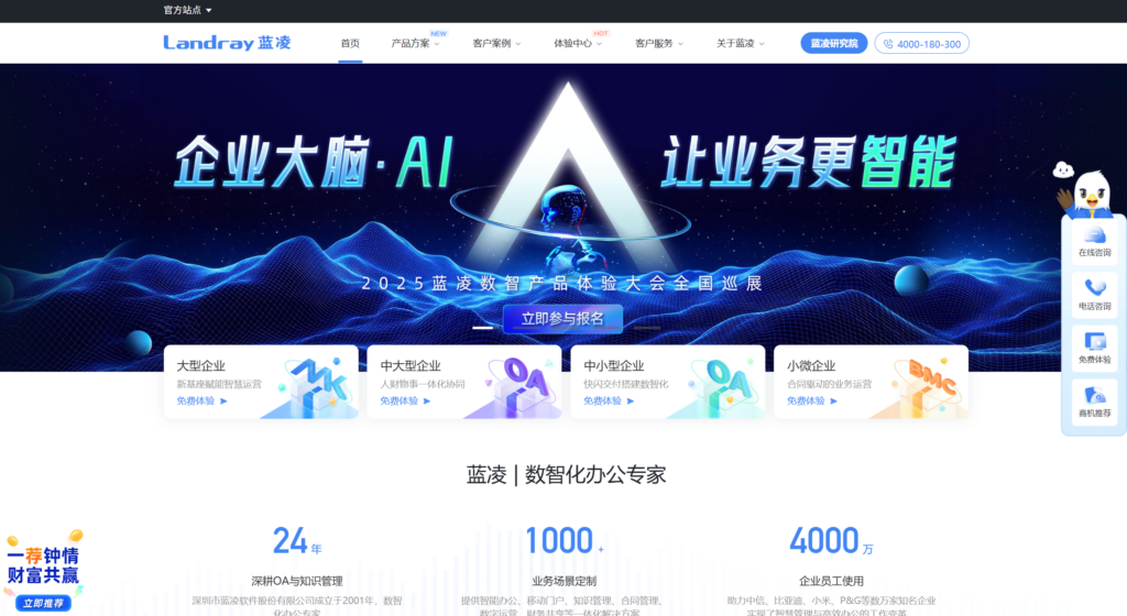 蓝凌OA是一款专为企业数字化转型设计的智能办公平台,致力于提升组织的协同效率和管理水平。作为国内领先的智慧办公解决方案提供商,蓝凌OA在流程自动化、知识管理、移动办公和系统集成等方面具有显著优势,广泛应用于政府、金融、制造、教育等多个行业。