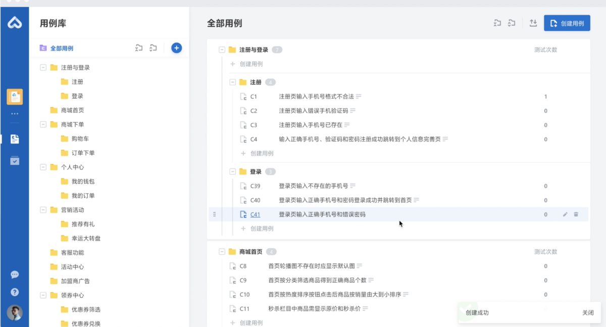 在线测试用例平台的核心功能涵盖用例库管理、测试用例的创建与编辑、执行计划的制定,以及测试报告的自动生成。通过分类、标签和高级搜索,测试人员能够快速定位和复用历史用例,提升测试用例设计与维护的效率。