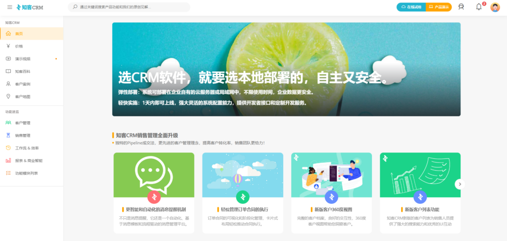知客CRM是一款支持本地化部署的私有云CRM系统,由厦门上古软件有限公司历经16年不断打磨而成,专注于帮助中小微及大型企业实现客户全生命周期的数字化管理。系统以销售线索获取、客户关系维护和回款闭环为核心,结合大数据与AI引擎,打通前端获客渠道与后台业务流程,助力企业构建以客户为中心的运营模式。