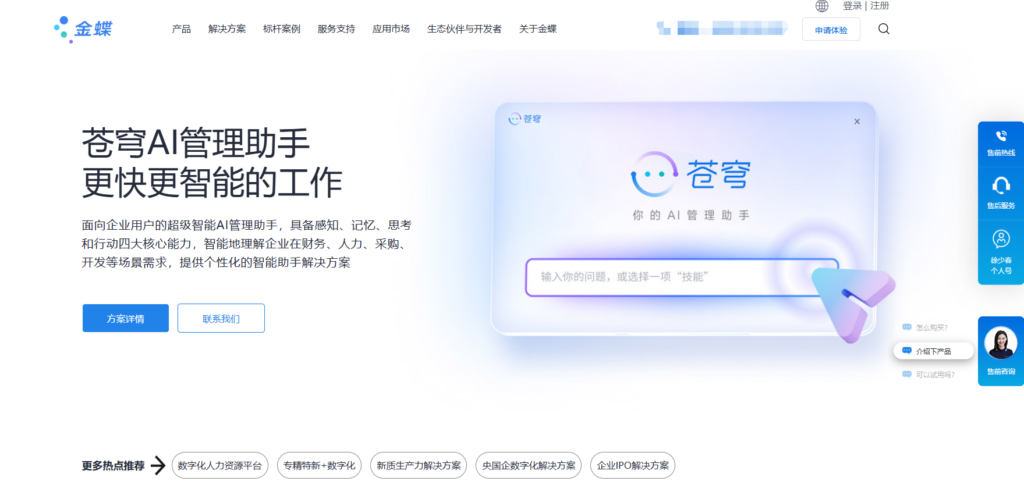金蝶云·苍穹提供丰富的模块化服务,包括员工服务云、财务云、人力云、采购云、制造云、销售云和物流云等业务云,以及应用开发服务、流程建模(BPMN2.0)、数据开发和开放平台服务;系统支持零代码/低代码可视化开发、积木式应用搭建和开放元数据引擎,满足多场景的业务需求,并能与第三方系统通过 OpenAPI 深度集成。