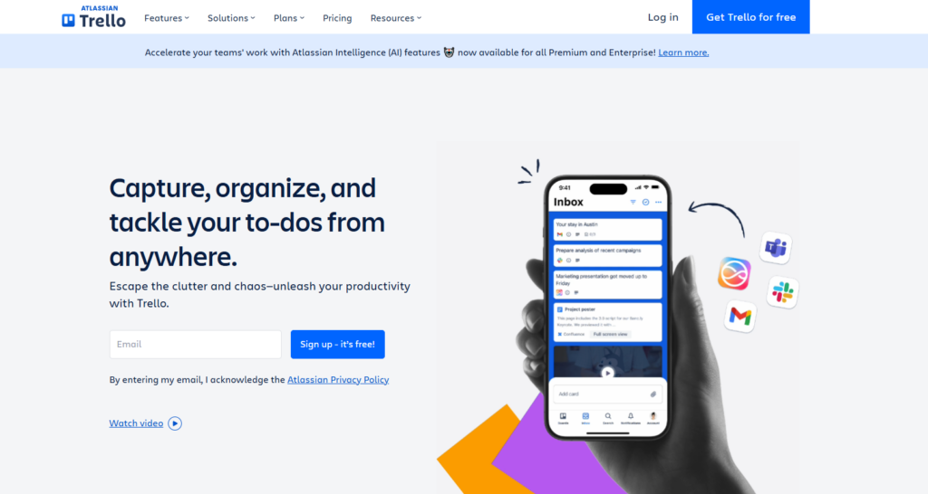 Trello以界面简洁、上手迅速著称,新用户无需培训即可开始使用;实时更新与多终端同步功能确保团队成员对项目进度一目了然,减少沟通成本并提升执行效率。基于云端部署,Trello提供免费版与付费版(Business Class、Enterprise)多种定价方案,满足个人用户到大型企业的需求。