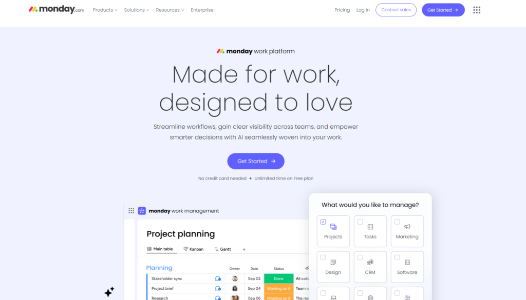 Monday.com是一款基于云端的工作操作系统(Work OS),旨在帮助团队将各种项目与流程数字化并统一管理。平台采用可视化界面,用户可以通过创建工作区、面板和列来直观地分解和分配任务,并实时跟踪进度与状态,无需频繁切换工具即可完成日常协作与沟通。