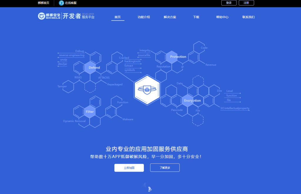 该平台的优势在于其业内领先的加固技术和全面的安全防护能力。梆梆安全已为众多手机银行、移动证券、移动电商等大型客户提供了优质的安全服务,帮助开发者实现诸如屏蔽游戏外挂、运行环境清场、虚拟安全键盘等扩展安全功能。此外,平台还提供APK安全检测、渠道盗版监测、移动威胁态势感知等服务,帮助开发者持续监测应用上线数据,及时发现新增各类盗版情况。