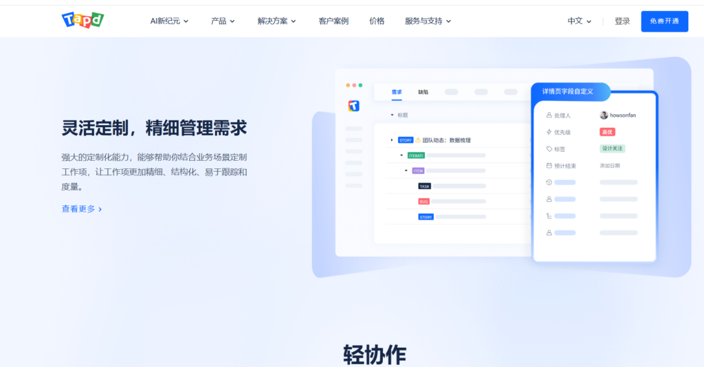 更让我印象深刻的是它的灵活工作流配置和数据驱动分析能力。用户可以根据自己团队的实际流程,自定义角色权限与审批链路;借助内置的工时统计、燃尽曲线以及迭代报表,项目经理能够轻松导出精准的 KPI 报告,为上层决策提供有力依据。再加上云原生的开发环境支持,TAPD 无疑是国内团队追求敏捷高效时的首选平台之一 。