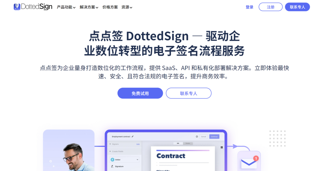 DottedSign 是一款简单易用的电子签名工具,支持多种文件格式和签署方式,提供文档发送、签署提醒、模板管理和审计日志等功能。它的核心优势在于其简洁的界面和快速签署流程,用户可通过网页或移动应用快速完成签署,并实时查看签署进度。DottedSign 支持与云存储服务(如 Dropbox、Google Drive)集成,方便用户直接从云端选择文件进行签署,同时提供多语言支持,适应全球化业务需求。