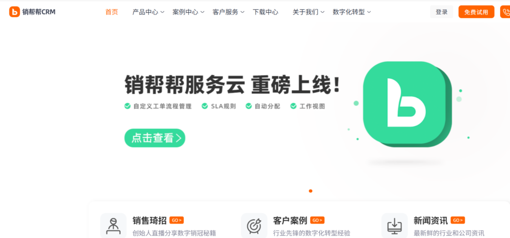 销帮帮CRM是由杭州逍邦网络科技有限公司于2015年推出的一款以移动管理为核心的云端CRM销售管理系统,致力于为中小企业和大型组织提供从营销、销售到售后的一体化客户全生命周期管理服务。系统基于“PaaS+低代码”平台,可灵活进行业务定制与敏捷交付,帮助企业在市场快速变化中及时响应需求,并已获得金沙江创投等机构的融资支持,拥有10000+付费客户及400000+企业用户的市场验证。