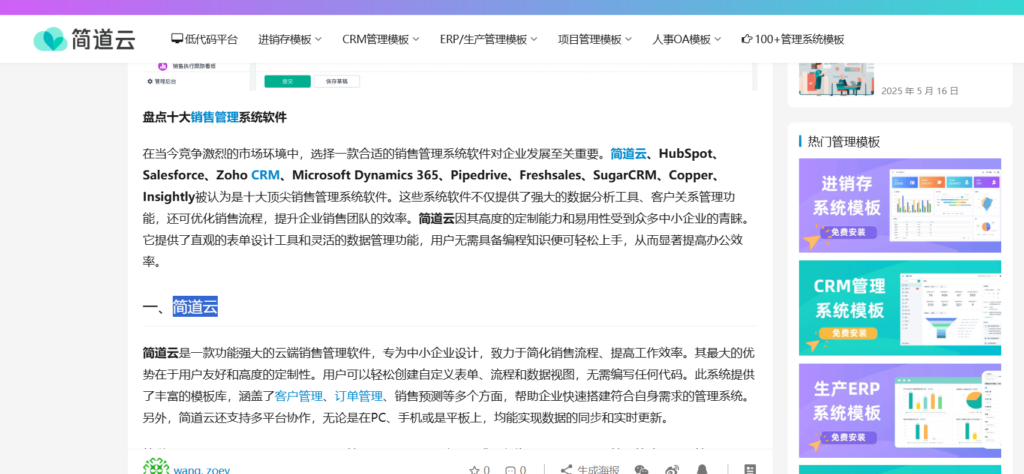 中小型企业应优先考虑易用性与性价比兼顾的SaaS CRM产品。这类企业通常对预算敏感、信息化程度相对较低,推荐选择如Zoho CRM、HubSpot CRM等支持快速上线、操作简单、基础功能齐全的云端方案,既能快速启动,也能在业务增长后平滑升级至更高版本。