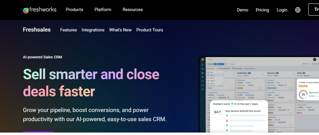Freshworks CRM(前身为Freshsales)是一款面向中小型企业的云端客户关系管理平台,以其直观的操作界面和丰富的销售自动化功能著称。系统内置电话、电子邮件和聊天工具,支持一键拨号、邮件跟踪与自动日志记录,帮助销售团队高效管理线索和客户沟通。此外,AI 驱动的线索评分与预测分析功能(Freddy AI),能够根据客户互动和行为数据,智能推荐最具转化潜力的商机,从而提升销售成功率。Freshworks CRM 提供从免费试用到企业版多个定价层级,满足不同规模企业的预算与需求。
