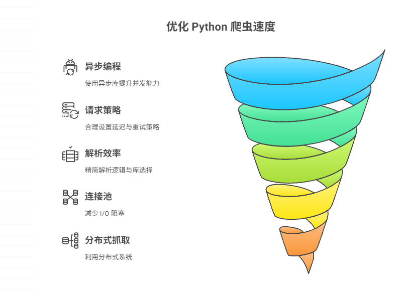 要优化 Python 爬虫的速度,关键在于:使用异步编程提升并发能力、合理设置请求延迟与重试策略、精简解析逻辑与选择高效的解析库、采用连接池机制减少 I/O 阻塞、充分利用分布式抓取。其中,使用异步库如 aiohttp 替代 requests 模块是提升网络请求效率的最直接手段。异步 I/O 可显著提高并发请求数,适合处理大量网页抓取任务。