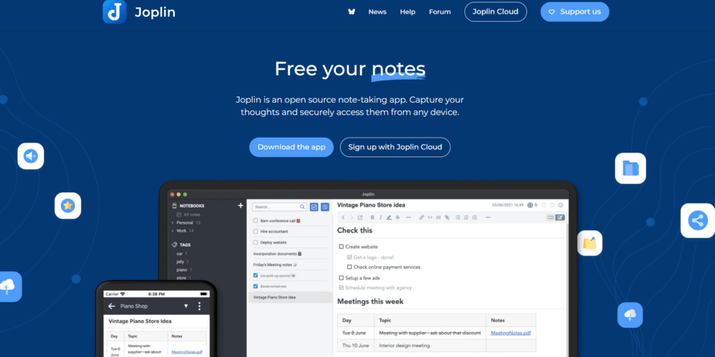 Joplin 是一款开源、注重隐私的笔记记录和待办事项管理应用程序,旨在提供一个安全可靠的环境来捕获、组织和检索各类信息。它支持丰富的文本格式(特别是 Markdown),允许用户跨多个设备同步他们的数据,并将用户的数据主权放在首位。用户数据通常存储在其选择的云服务或本地,而非强制依赖特定厂商的服务器。