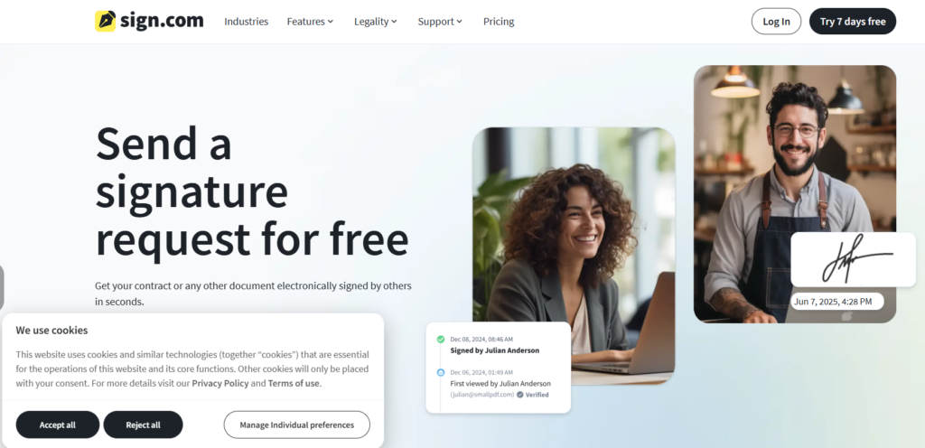 多家第三方测评(如 TechRadar 2025“Adobe Sign 最佳替代品”榜单)将 SignNow 评为“最适合商业用户”的电子签名工具,原因在于界面友好、浏览器兼容性好,且支持模板分配角色、实时状态提醒等协同功能;近期更新还放宽了用户数量限制,便于快速扩张的团队一次购入、多人共享。另外,SignNow 提供 7 天免费试用和免费沙盒 API,使企业能够在接入前验证功能与合规性,降低试错成本。