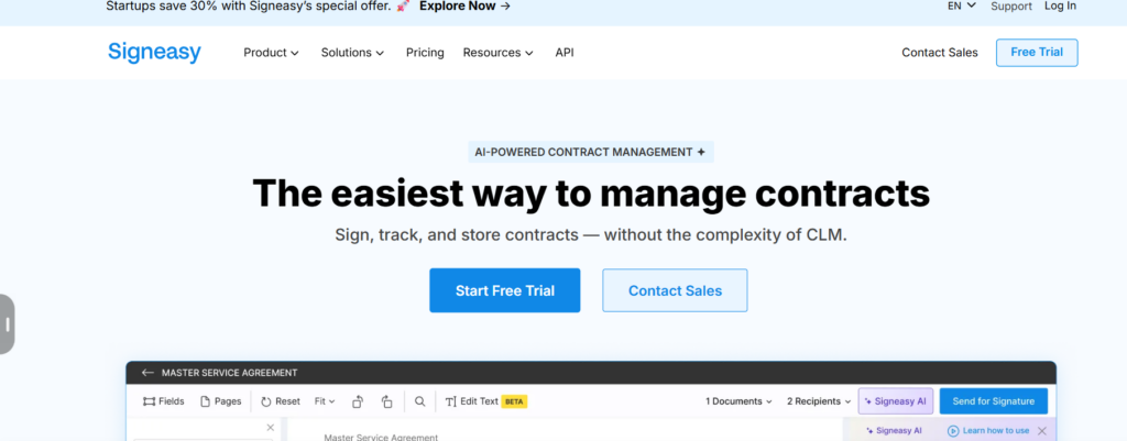 需要注意的是,业内对 SignEasy 的常见反馈是“高级工作流与合规配置不如 DocuSign 等旗舰产品丰富”,例如缺乏细粒度角色权限、自动化审批节点有限;此外,入门计划的文档数量限制对合同量较大的团队可能不够用,升级套餐后价格优势会被拉平。整体而言,SignEasy 适合追求快速部署、移动签署体验和成本可控的中小企业,但对于需要复杂流程或更高安全等级的大型组织,仍需综合考量其功能深度与长期成本。