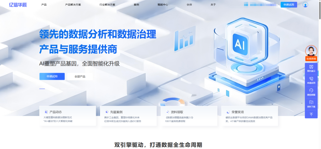 亿信华辰睿治智能数据治理平台是一款覆盖数据全生命周期的综合治理应用,核心聚焦元数据管理并以其为基础进行治理体系搭建。该平台可以在本地或云环境中独立或组合使用多个模块,支持从元数据采集、标准定义到数据质量、安全与资产管理的一体化治理。