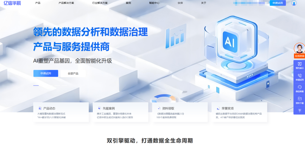 亿信华辰 iBI(又称亿信ABI)是由北京亿信华辰自主研发的一款支持私有部署的一站式商业智能(BI)与数据分析平台。该软件融合数据源适配、ETL、数据建模、可视化分析、数据填报、工作流与移动端应用等功能,强调全流程、自主控制的企业级数据分析能力。