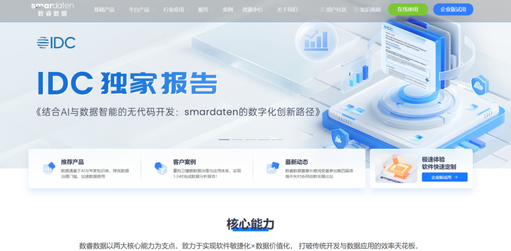 数睿数据 SmartBI 是一款面向企业级用户设计的商业智能(BI)平台,强调本地化私有部署能力,支持企业在自有服务器或云环境中构建独立的数据分析体系。该平台致力于提供从数据连接、处理到可视化分析的一站式解决方案,满足企业对数据安全与自主可控的需求。