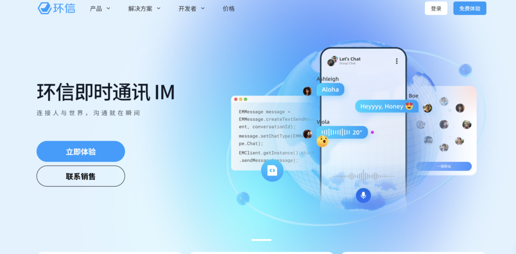 环信支持一对一单聊、群聊、聊天室等多种沟通方式,提供文本、语音、图片、视频、文件、地理位置、红包等多样化消息类型,同时具备离线消息和多端漫游功能,还支持消息撤回和状态回执等实用功能。平台提供 Android、iOS、Web 等多端 SDK 和服务端 REST API,方便接入与二次开发。