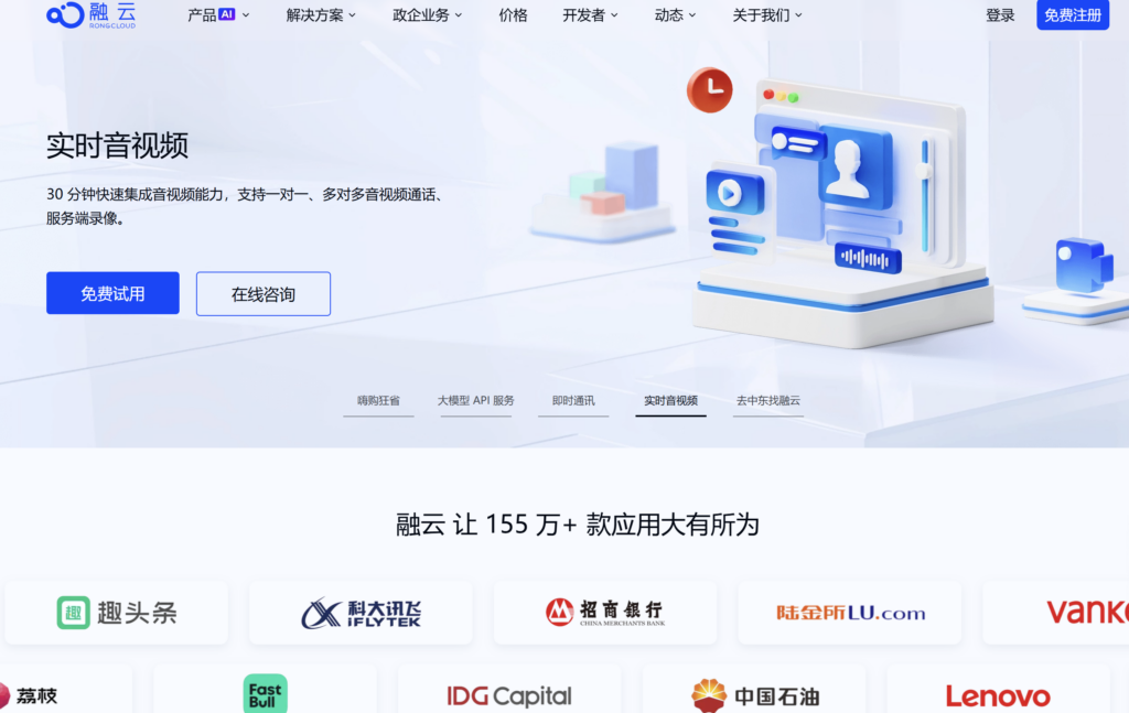 容联云通讯平台提供实时聊天、音视频通话、视频会议、企业通讯录与统一工作门户等多元化IM功能,开发者可通过SDK/API快速接入,同时配套短信、语音通知、号码认证等云通信能力,支撑从消息互动到通知验证的一站式通信体验。