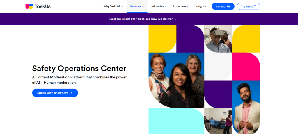 TaskUs 是一家成立于2008年,总部设在美国德州的新布朗费尔斯的数字服务与外包公司,其内容审核服务结合人工与AI技术,致力于为社交媒体、直播平台及在线社区等提供高效的在线内容审核系统服务,帮助客户维护信任与安全运营环境。