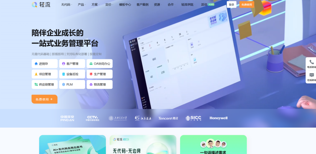 轻流是一款国内知名的前端低代码/无代码构建平台,主要面向企业业务管理系统搭建。它采用模块化可视化拖拽方式,让无技术背景的用户也能快速搭建表单、流程、报表等管理系统,支持 Web 和移动端双端同步发布