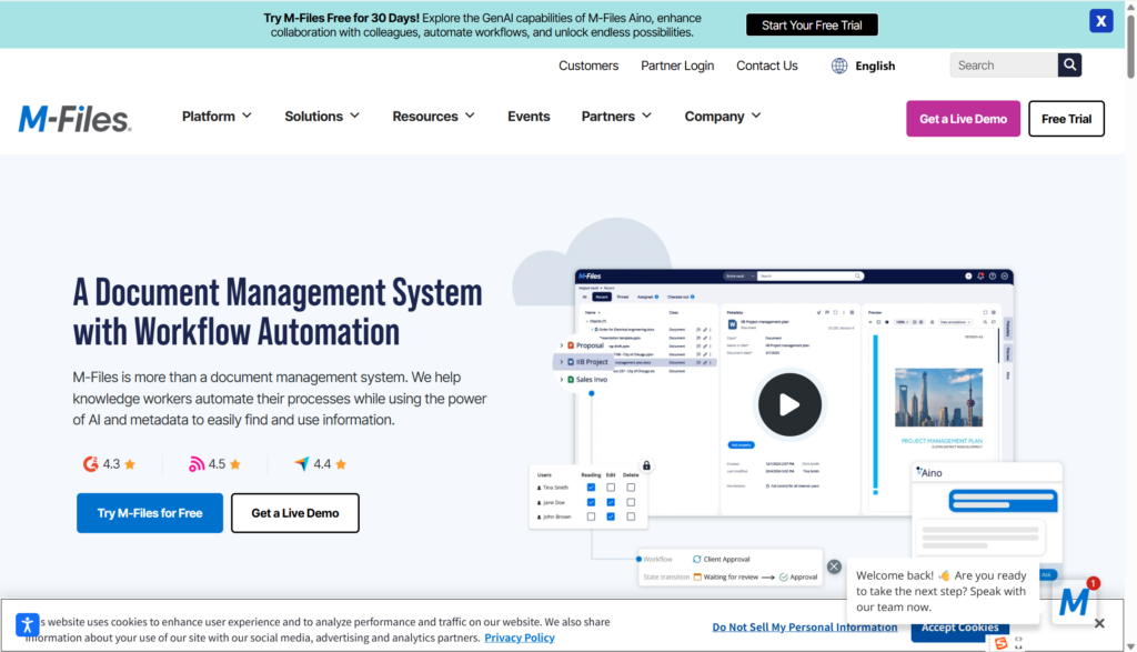 总体来说,M-Files适合需要精确管理大量文档的企业,尤其是那些有严格安全要求和高效协作需求的组织。其智能分类、版本控制和高度集成的特性使得它在企业文档管理领域具有较强的竞争力。