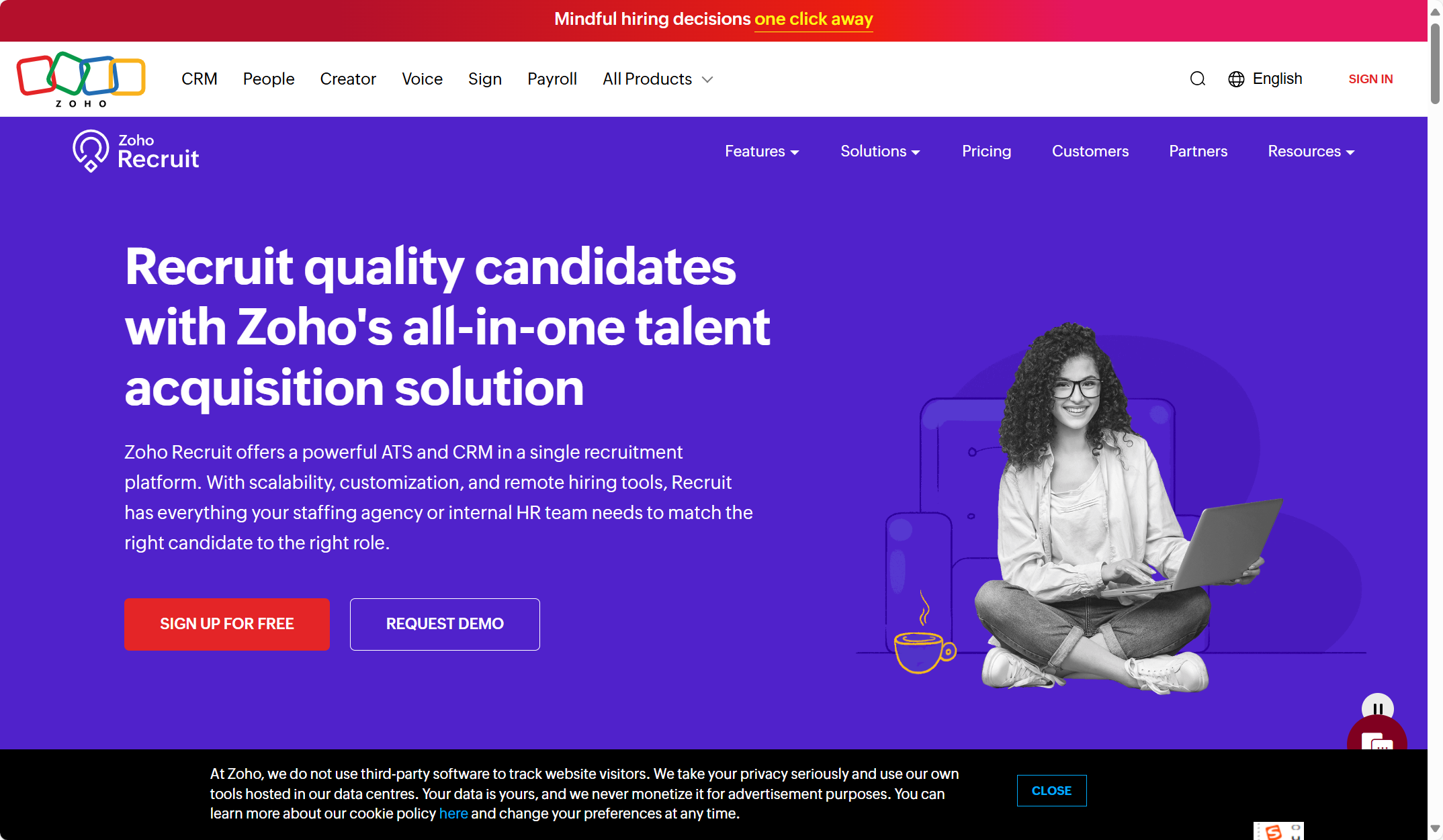 Zoho Recruit 是一款功能全面且高度可定制的云端招聘管理系统(ATS),适合中小型企业与招聘机构使用。该平台支持简历解析、职位发布、一键发布至主流招聘网站,并可通过自动化触发器或短信/邮件通知简化招聘流程 。用户界面简洁直观,支持自定义招聘管道与评分流程,多数用户反馈其“界面友好、易于上手” 。
